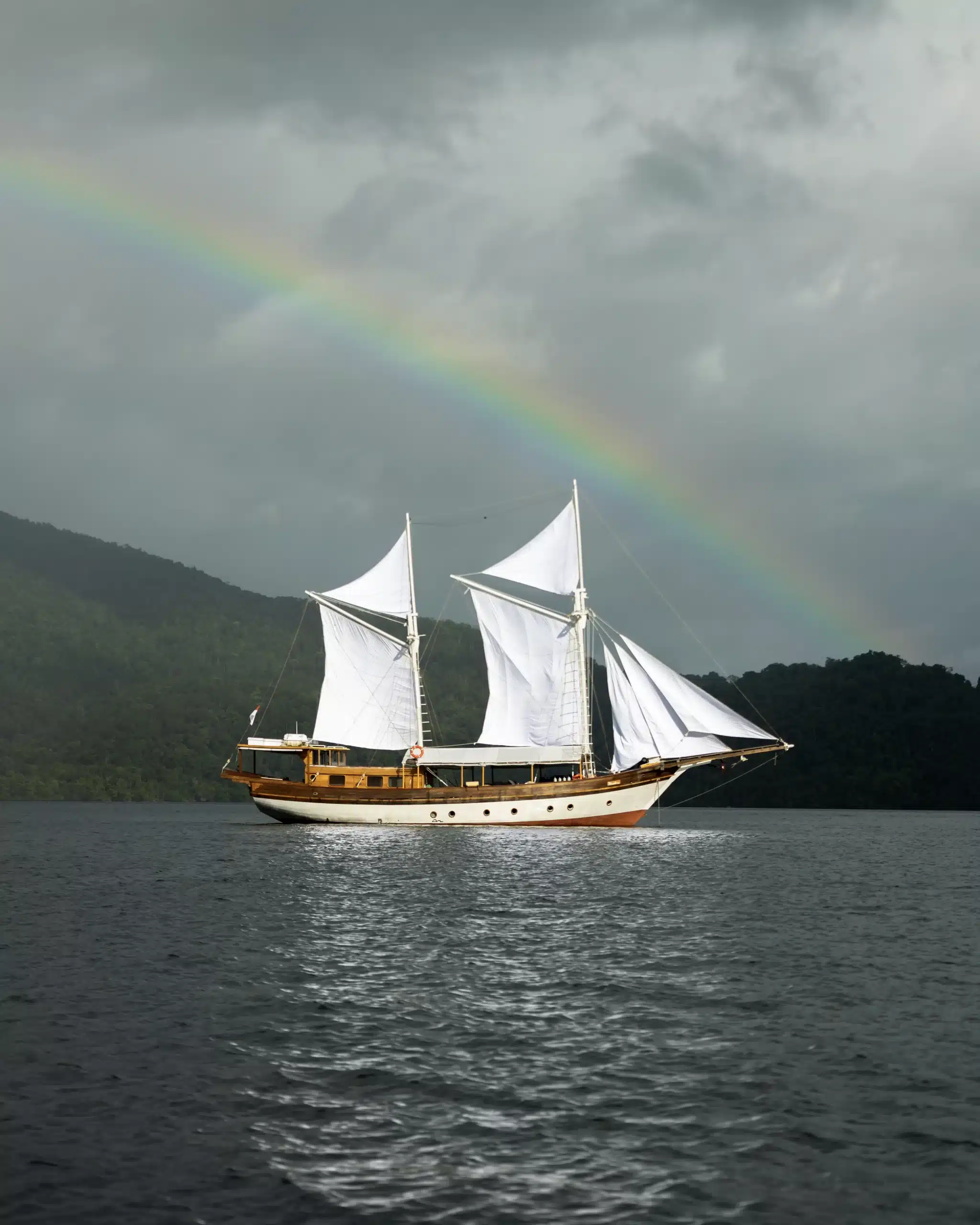 At 30 metres in length, Anne Bonny combines the graceful lines of a traditional sailing schooner with the comfort and reliability expected of a modern charter yacht. With just three cabins and a professional crew, she offers an intimate way to explore the Coral Triangle — sailing through Raja Ampat’s limestone lagoons, diving the reefs of Komodo, or anchoring in hidden bays far from the crowds.